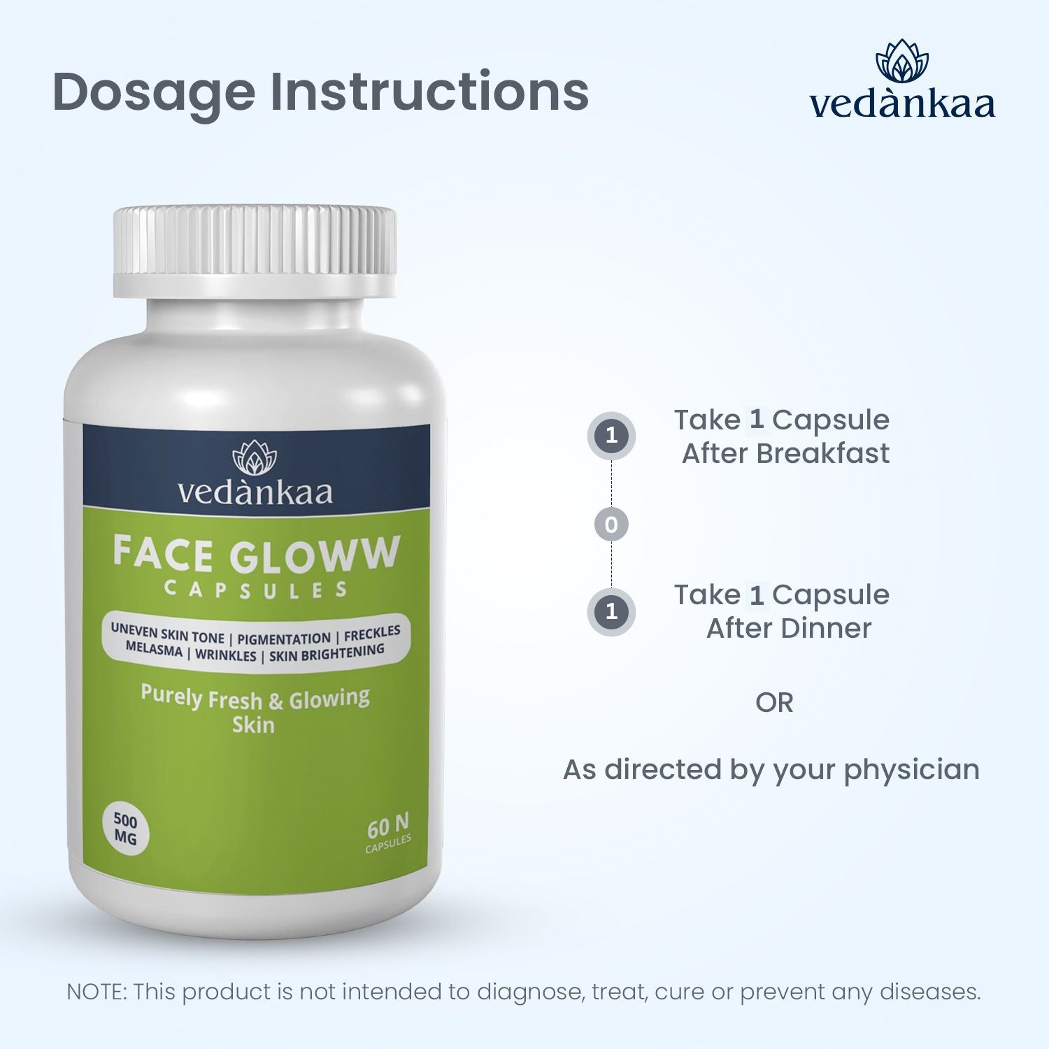 Vedànkaa Face Glow – 60 Capsules for Skin Brightening, Dark Spot & Wrinkle Reduction