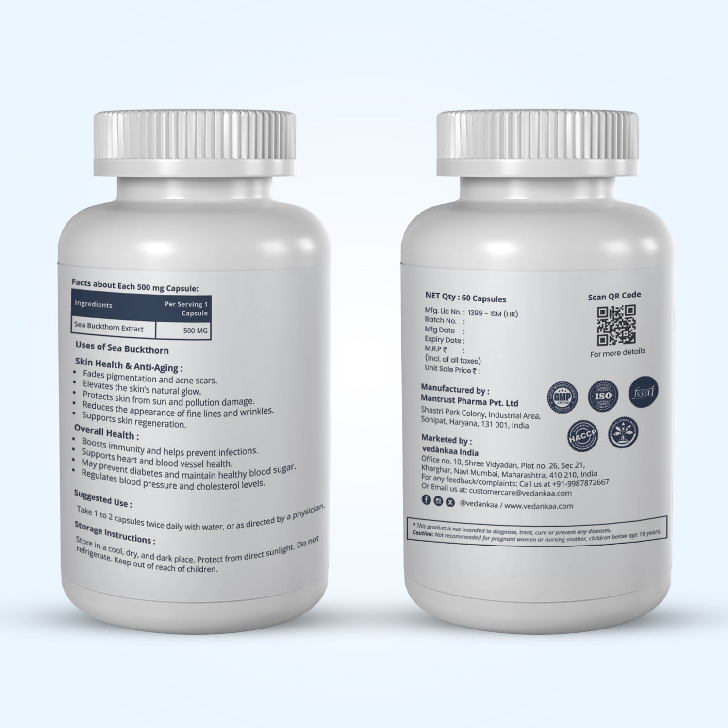 Vedànkaa Sea Buckthorn Capsules – Skin, Heart & Immunity Support | 500 mg, 60 Veg Caps