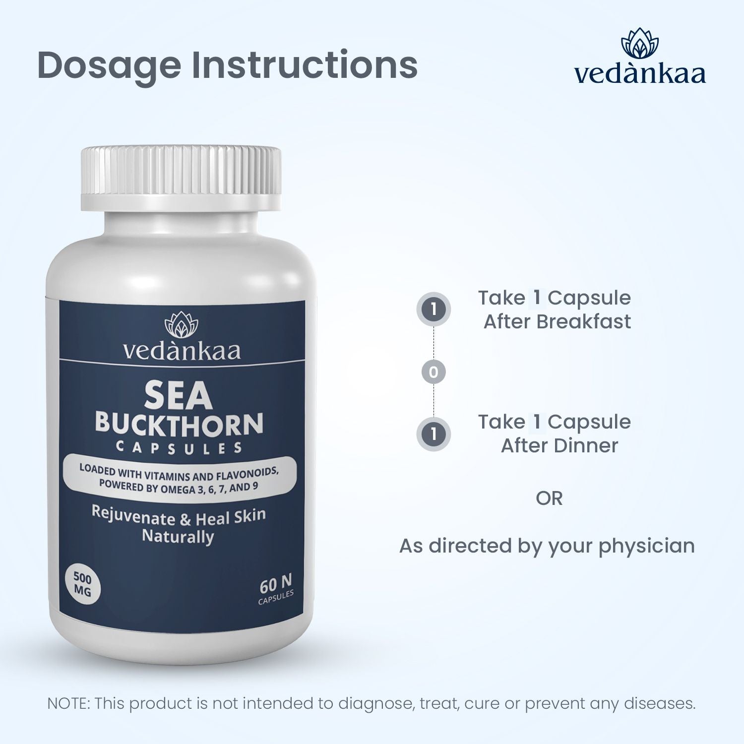 - Enjoy 1 - Vitavibe Sea Buckthorn capsule daily after breakfast and dinner for best results.